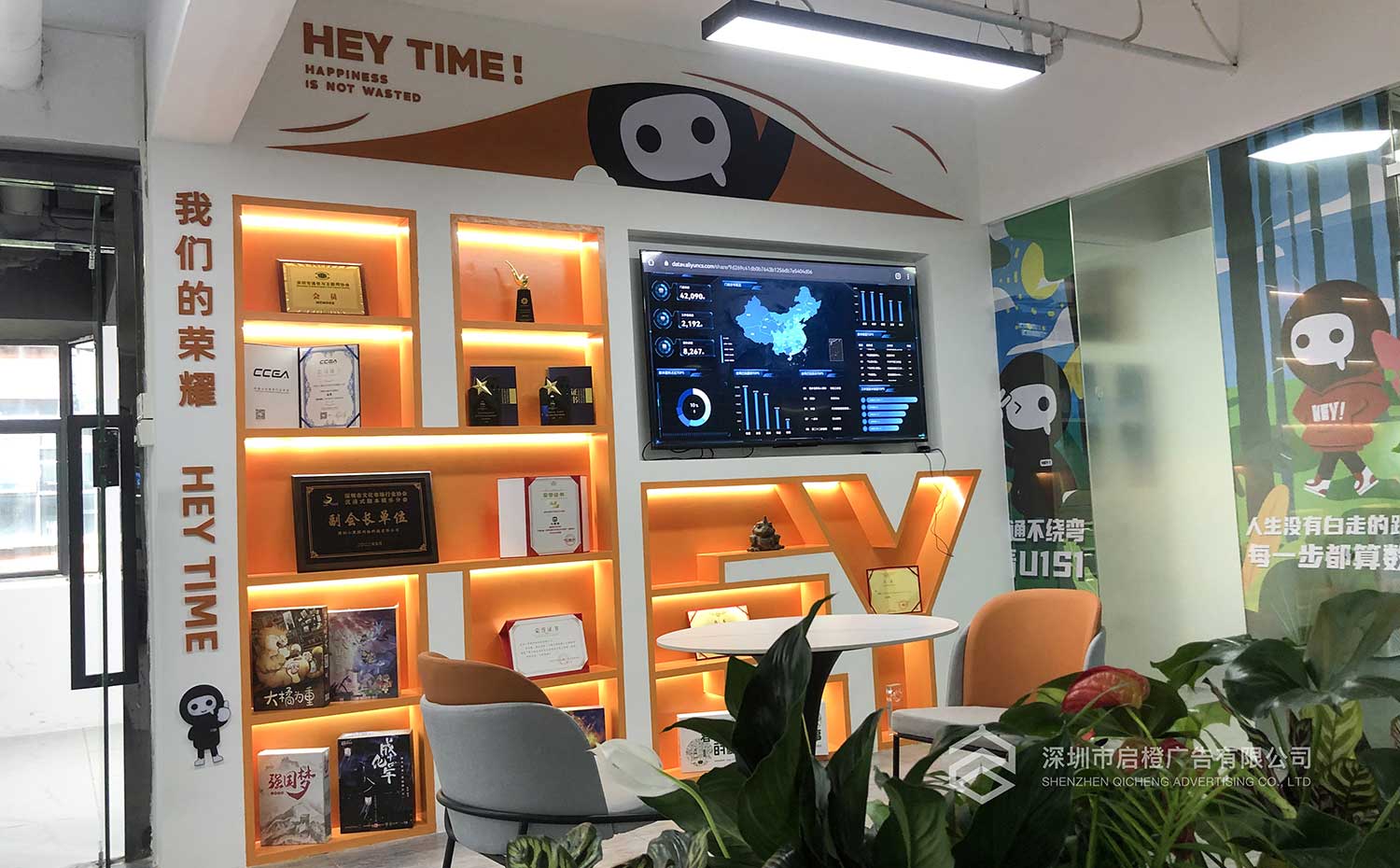 深圳小黑探网络科技有限公司(以下简称:小黑探)主要作为剧本杀游戏及周边产品的开发,销售。委托启橙广告对其前台区域,及办公区域环境的文化氛围进行改造优化。例如前台背景墙,玻璃隔断墙,荣誉墙,发展历程文化墙等等。提升小黑探整体的企业形象,美化办公环境。
